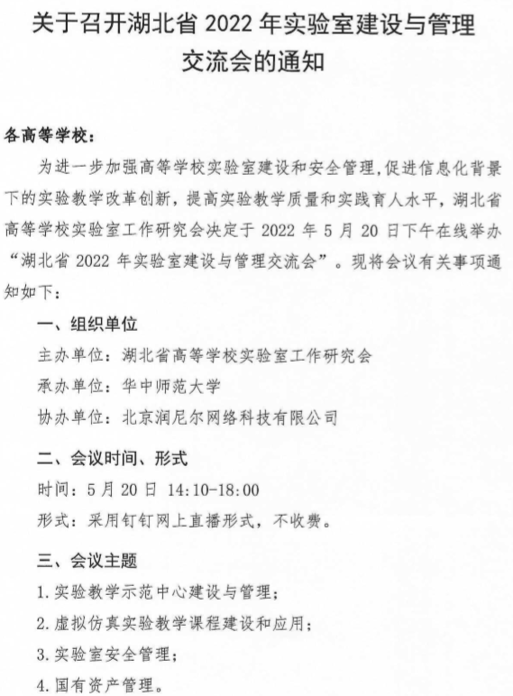 关于召开湖北省2022年实验室建设与管理交流会的通知